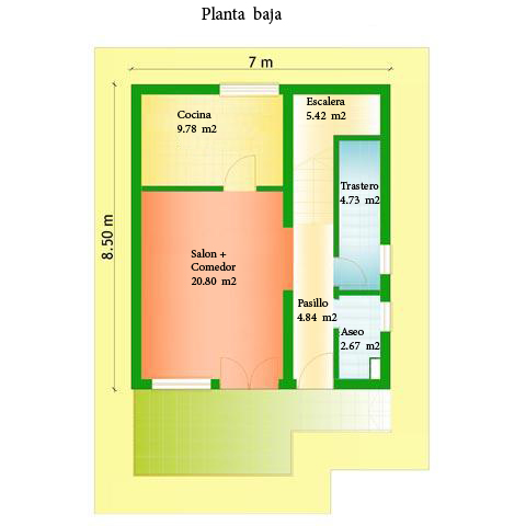 Es una casa con dos plantas, con una superficie de 62 m².
