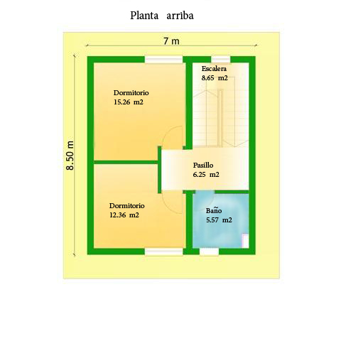 La parte arriba tiene: dos dormitorios y un baño.